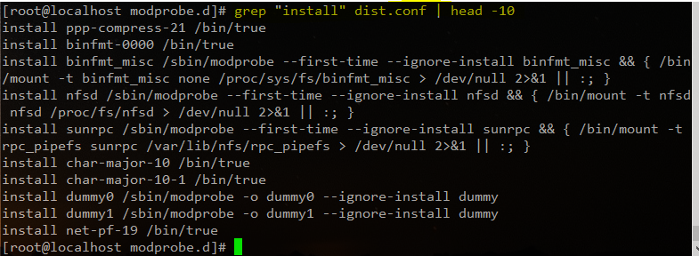 설정파일에 존재하는 항목은 대표적으로 alias, options, install, remove, blacklist 총 5가지가 있다.